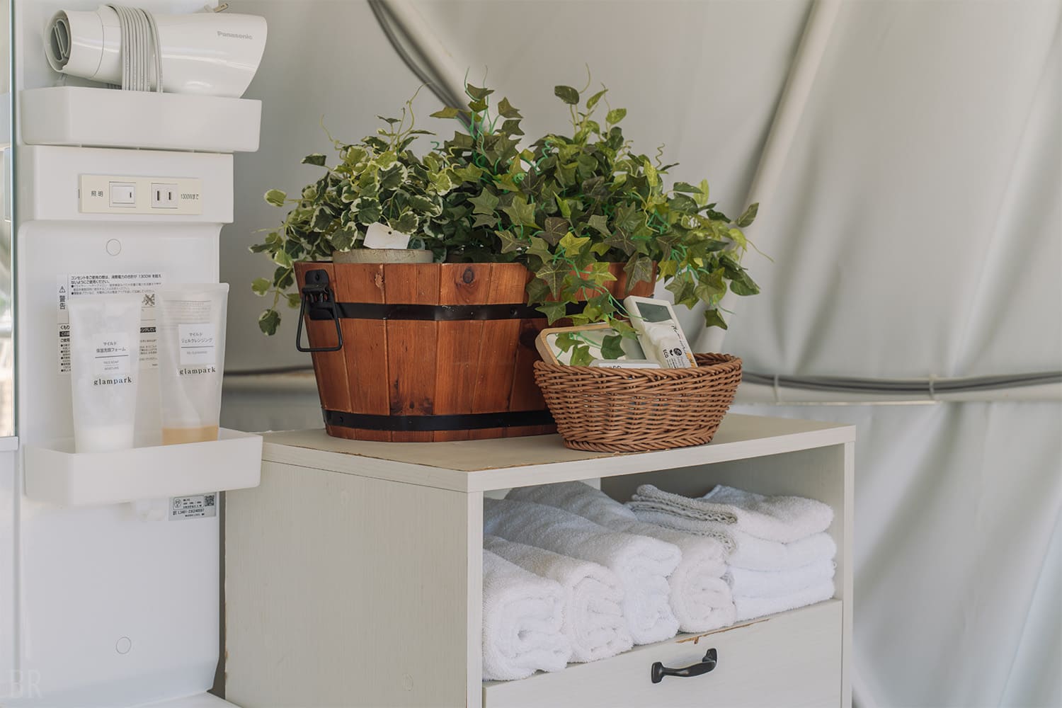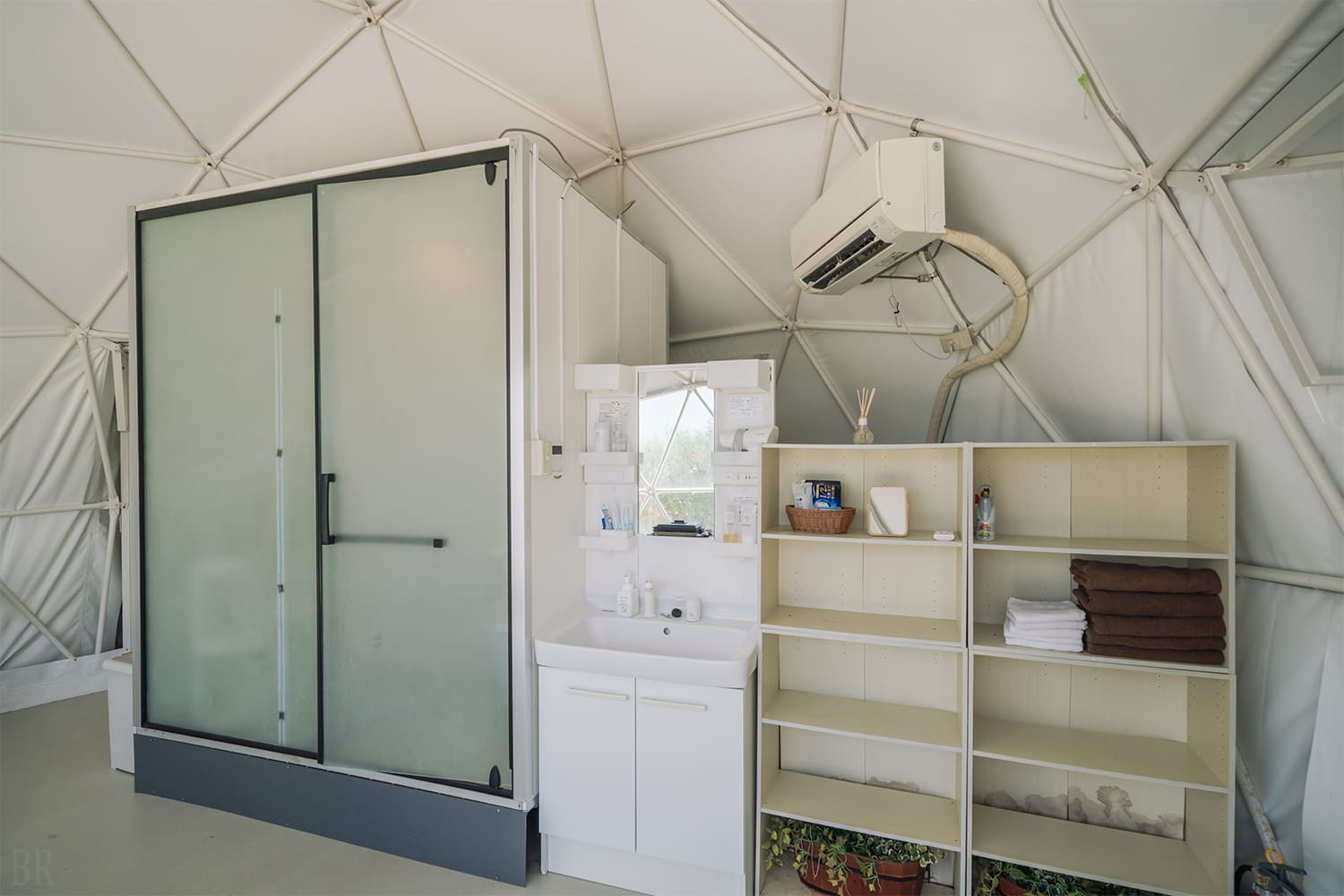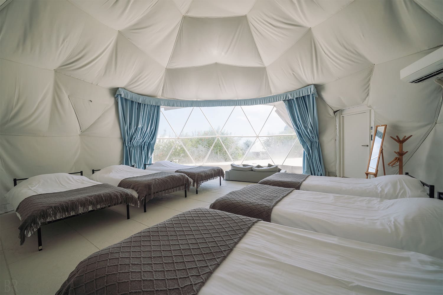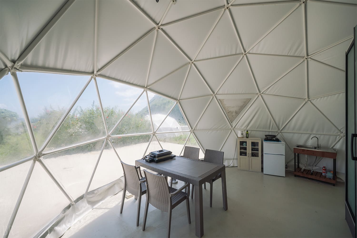 リビングスペースとBBQスペースで分かれており、二つのドームは扉で仕切られているので煙の心配はありません。